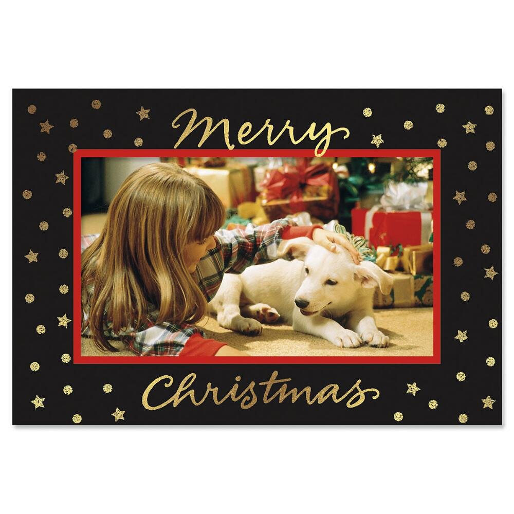 Deluxe Christmas Card Photo Frames Black Border With Gold Foil